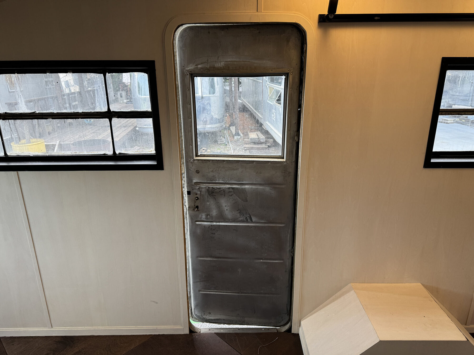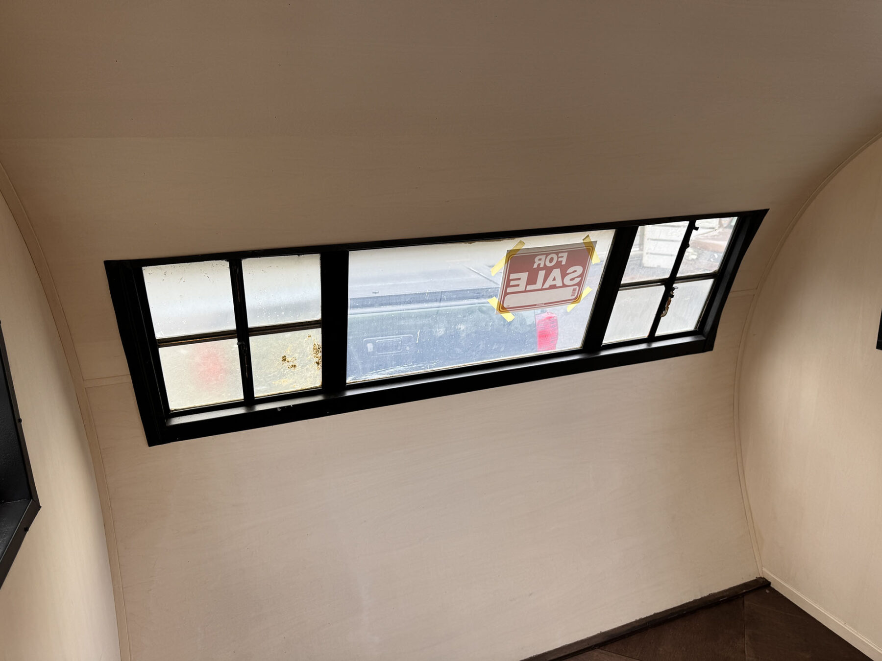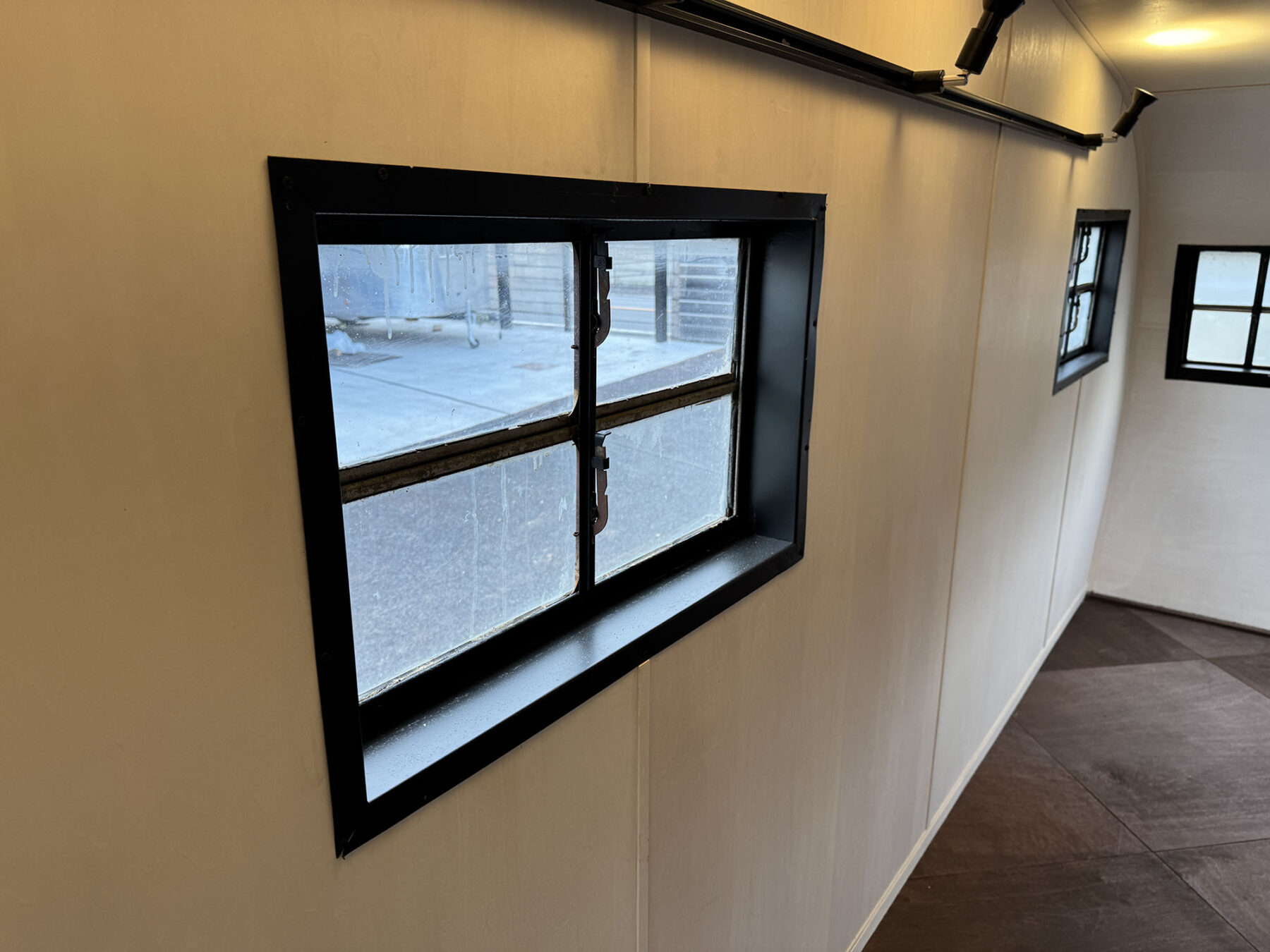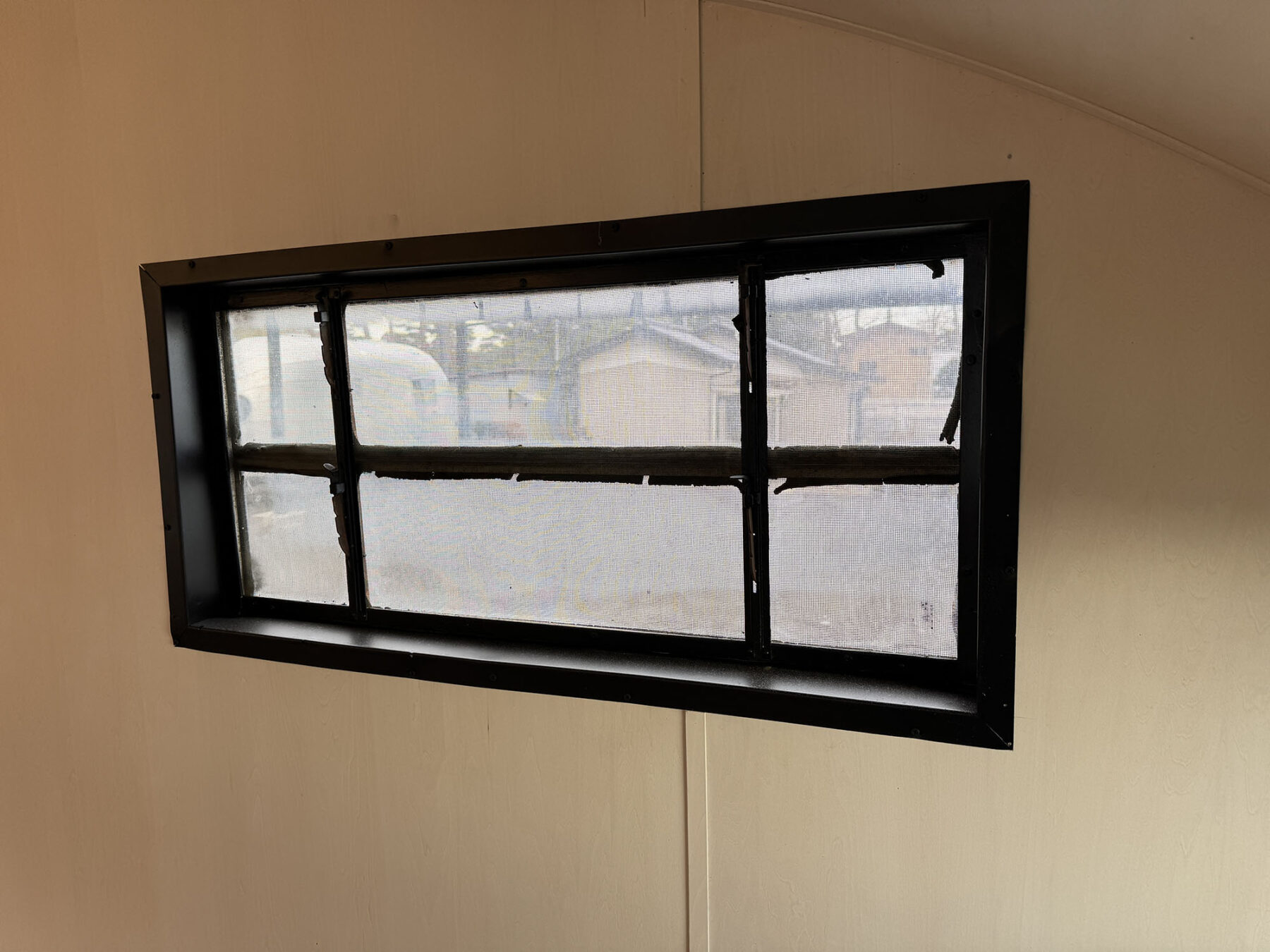 希少なショートサイズのスパルタネットです。日本到着後、きれいにスケルトン化し、断熱材の新設を行い、天井と壁をシナベニヤにて仕上げてあります。