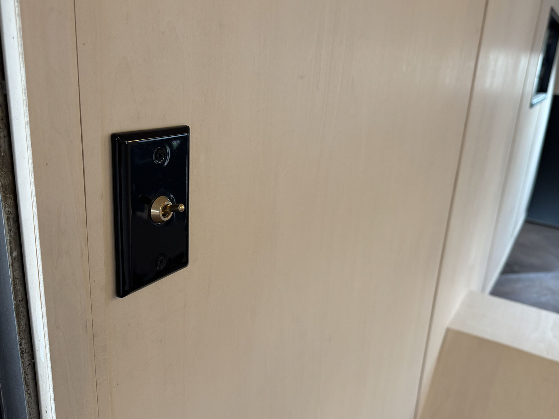 ライティングレールやライトのスイッチ、窓枠などは全てブラックで統一しております。
