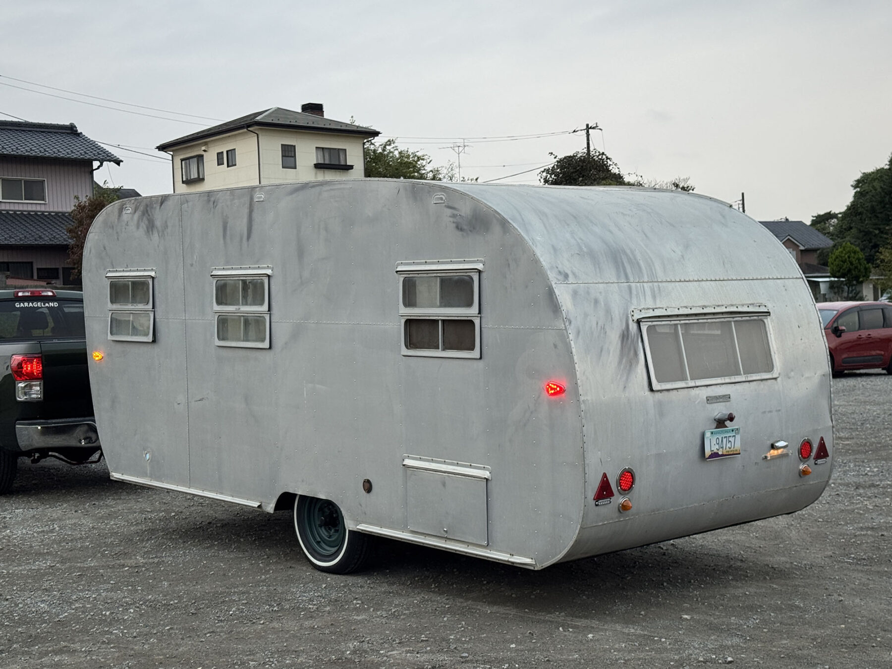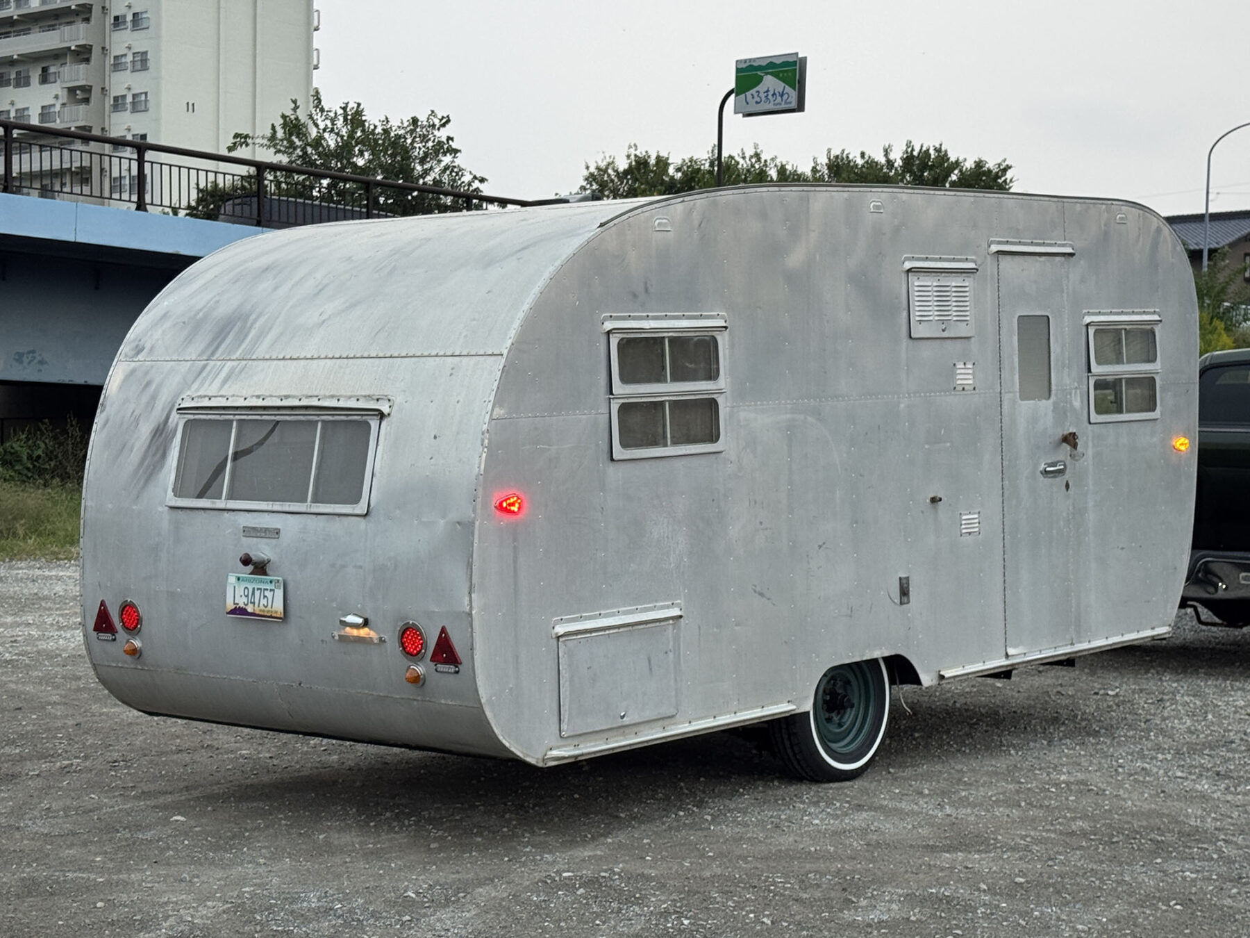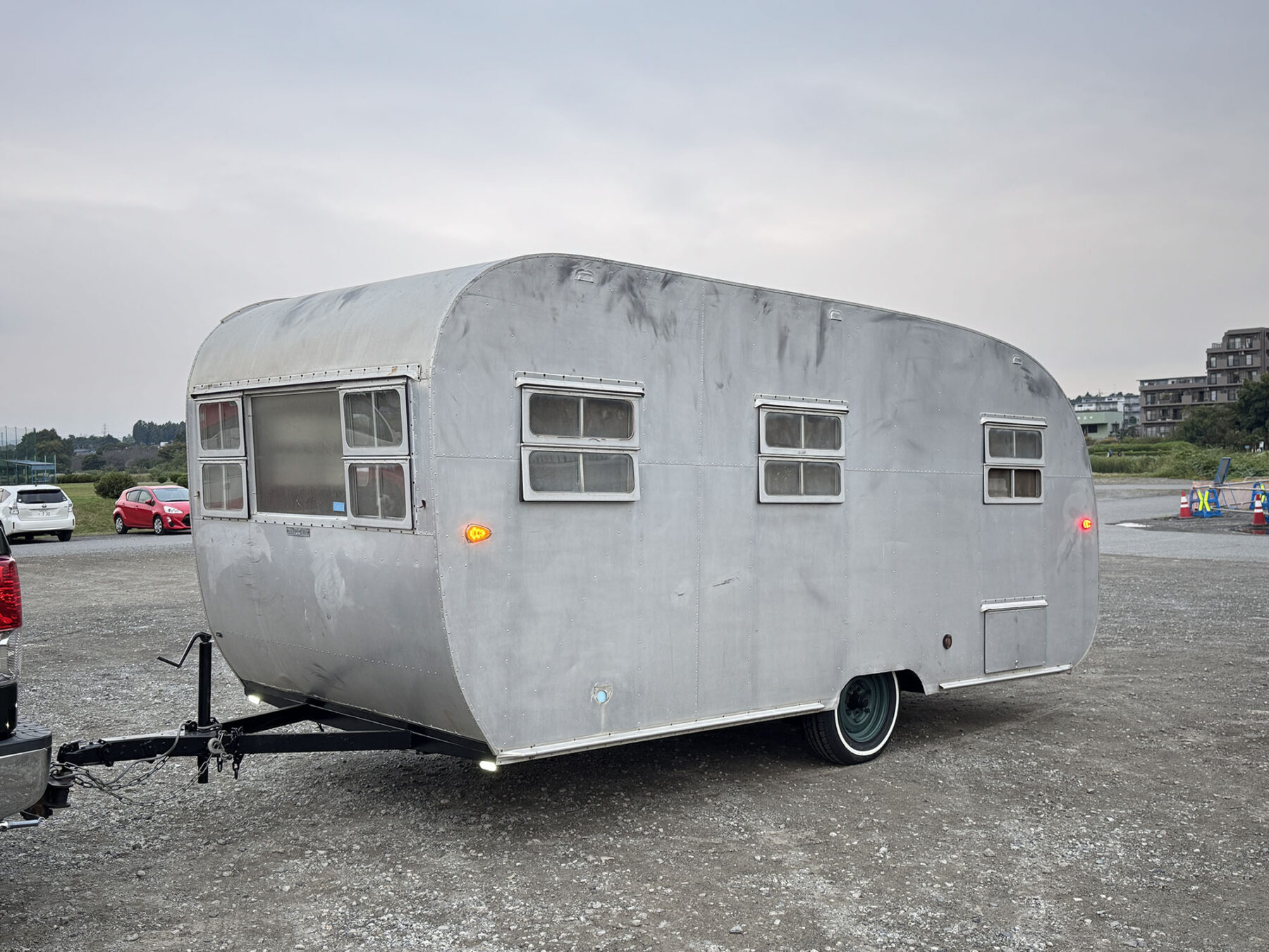 エアストリームやスパルタンなどはオリジナルなデザインですが、キャンドハムはトラベリーズから始まり、ボールズエアロやシャスタ、アロハ、スコッツマンなどなど、構造がシンプルなので色々なメーカーが作ってきたアメリカンヴィンテージトラベルトレーラーの王道デザインです。ボディサイズは約16フィート(約490センチ)、フレームを含めた全長が約18フィート(約550センチ)となります。