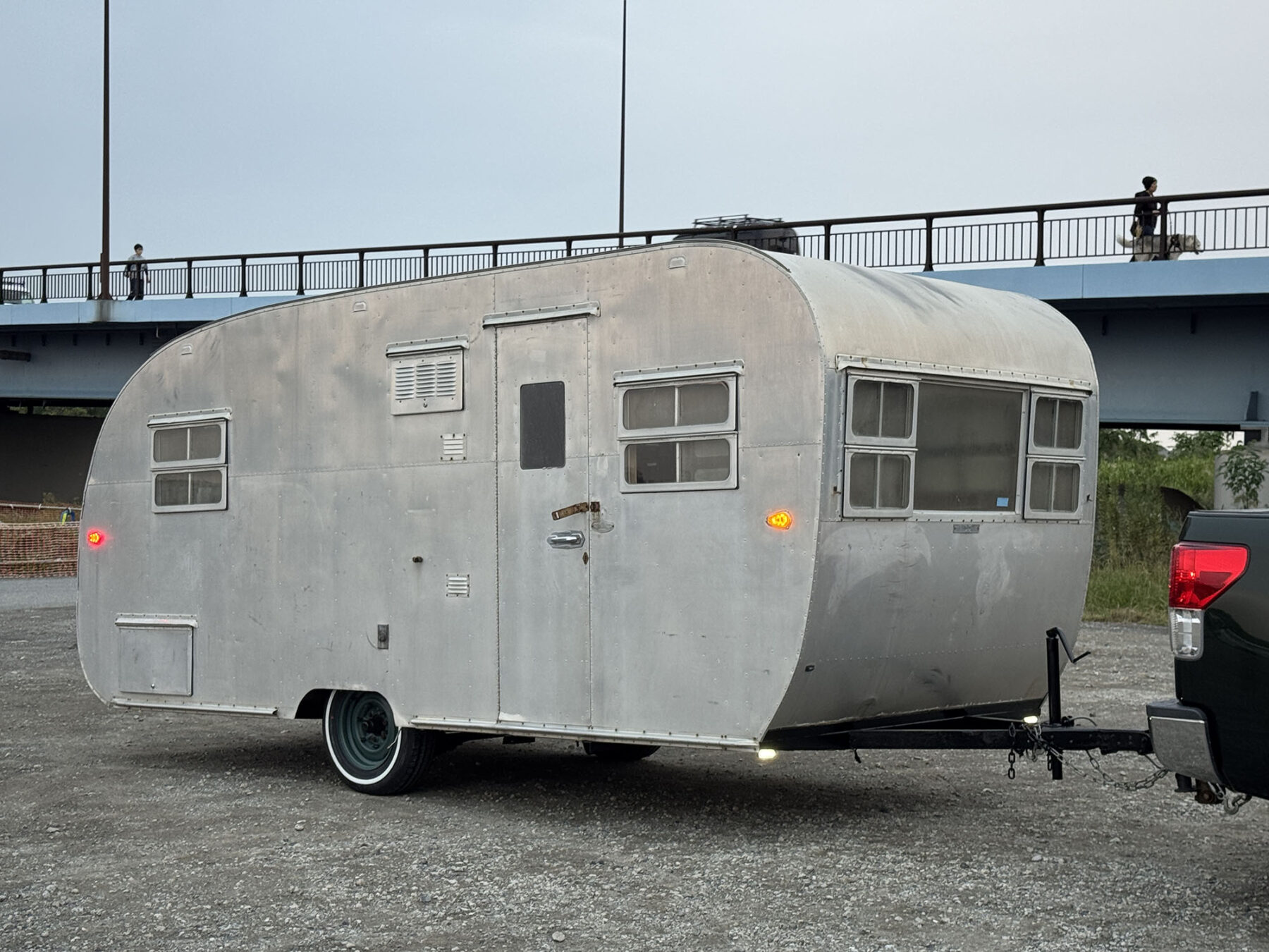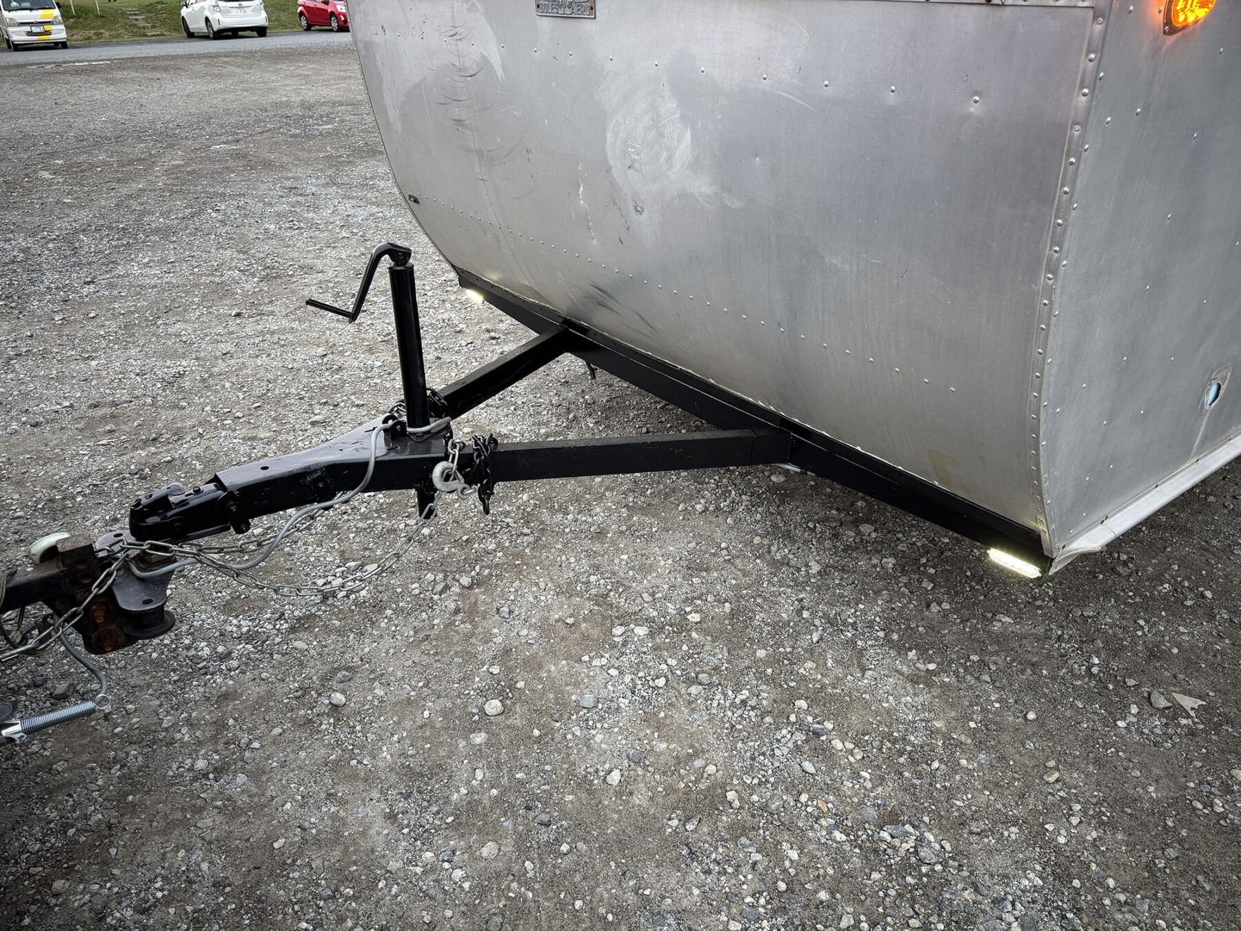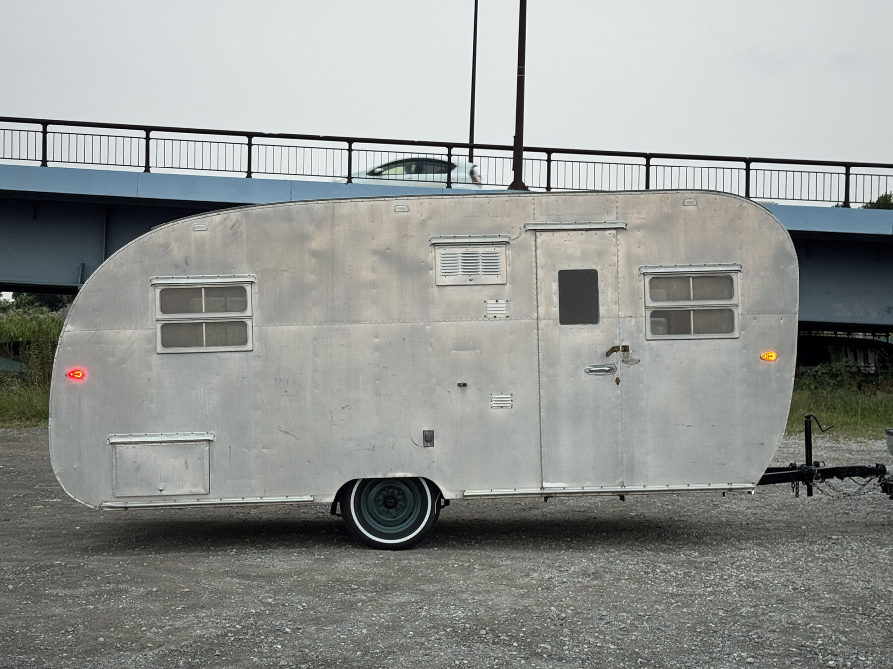 エアストリームやスパルタンなどはオリジナルなデザインですが、キャンドハムはトラベリーズから始まり、ボールズエアロやシャスタ、アロハ、スコッツマンなどなど、構造がシンプルなので色々なメーカーが作ってきたアメリカンヴィンテージトラベルトレーラーの王道デザインです。ボディサイズは約16フィート(約490センチ)、フレームを含めた全長が約18フィート(約550センチ)となります。