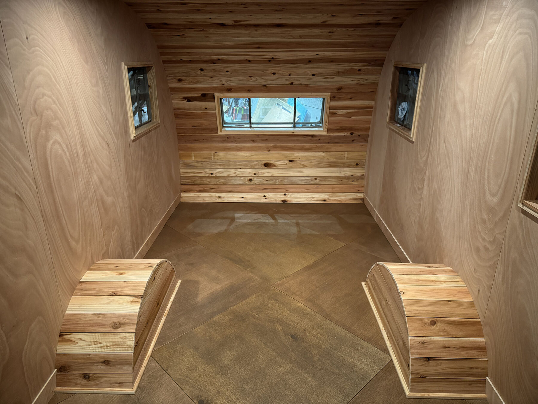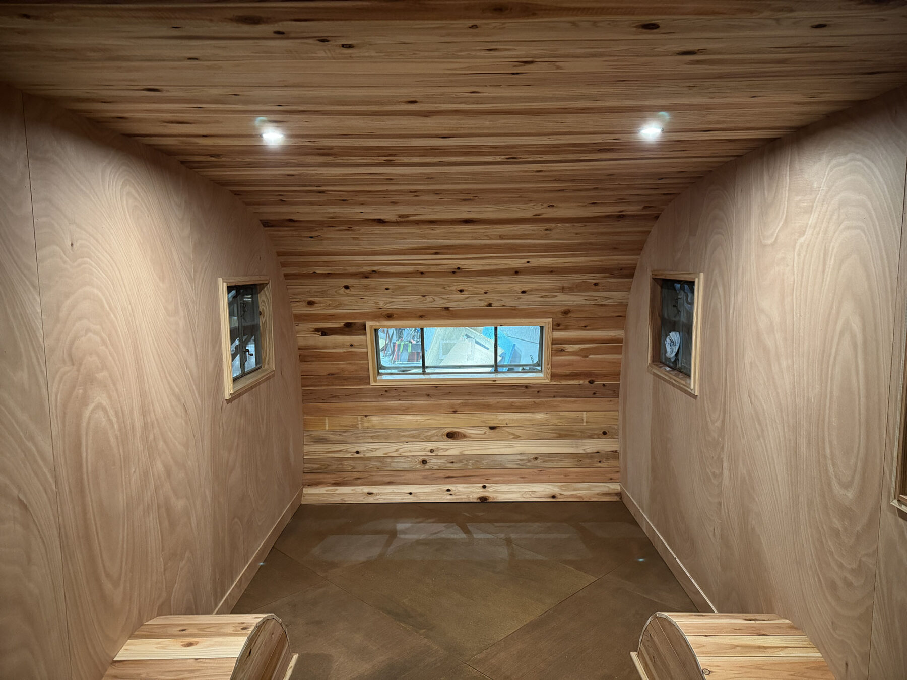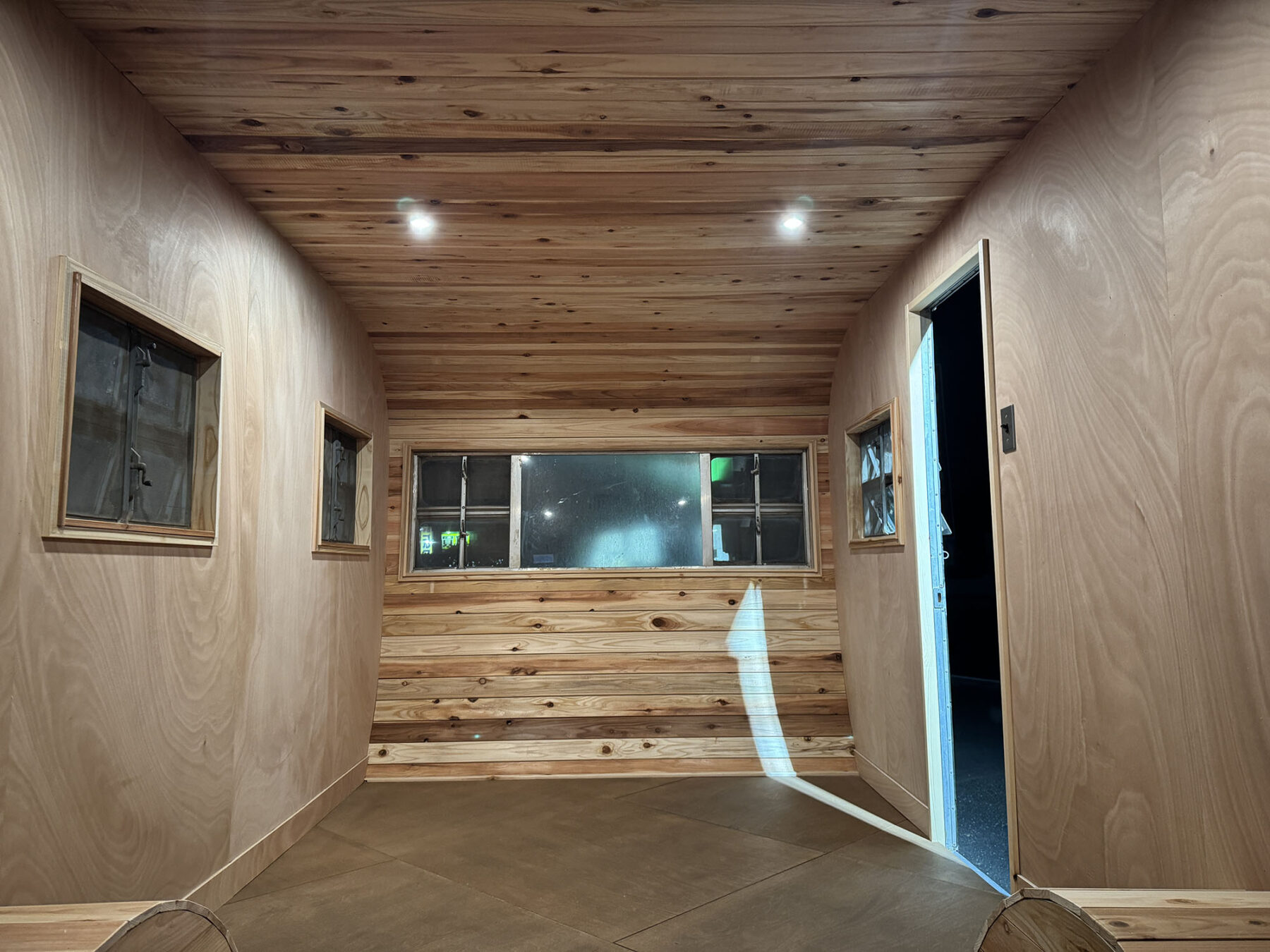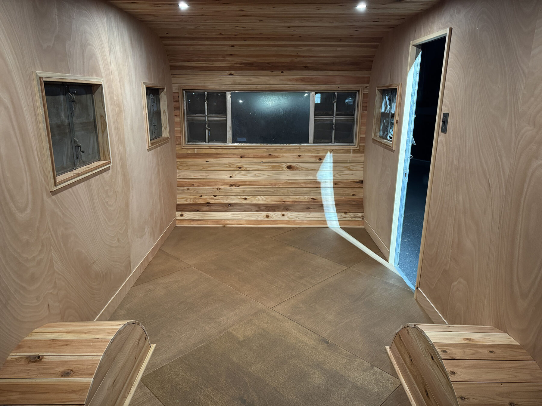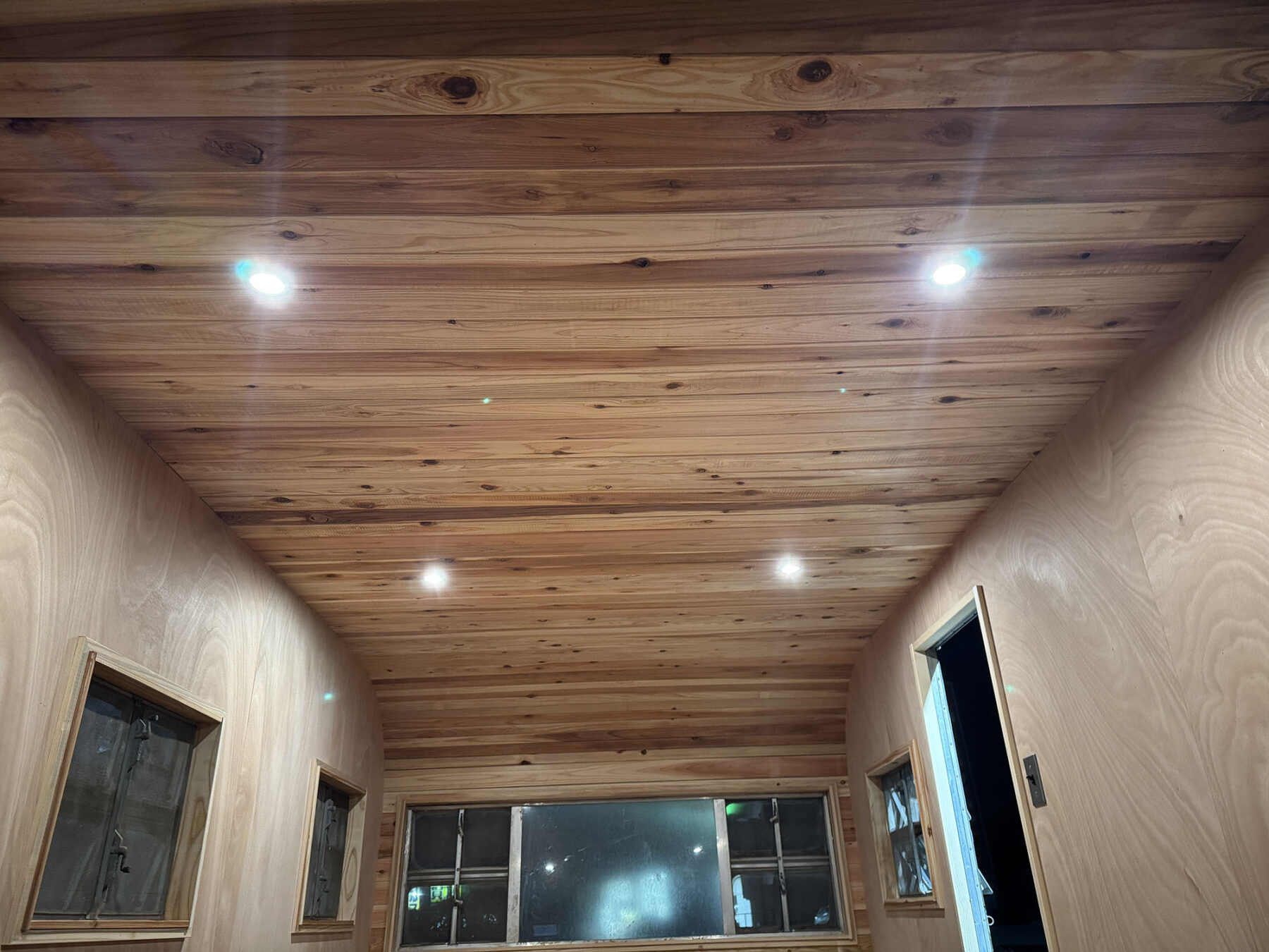 内装は日本到着後、きれいにスケルトン化し断熱材を新設し、床、壁、天井と仕上げを行いました。