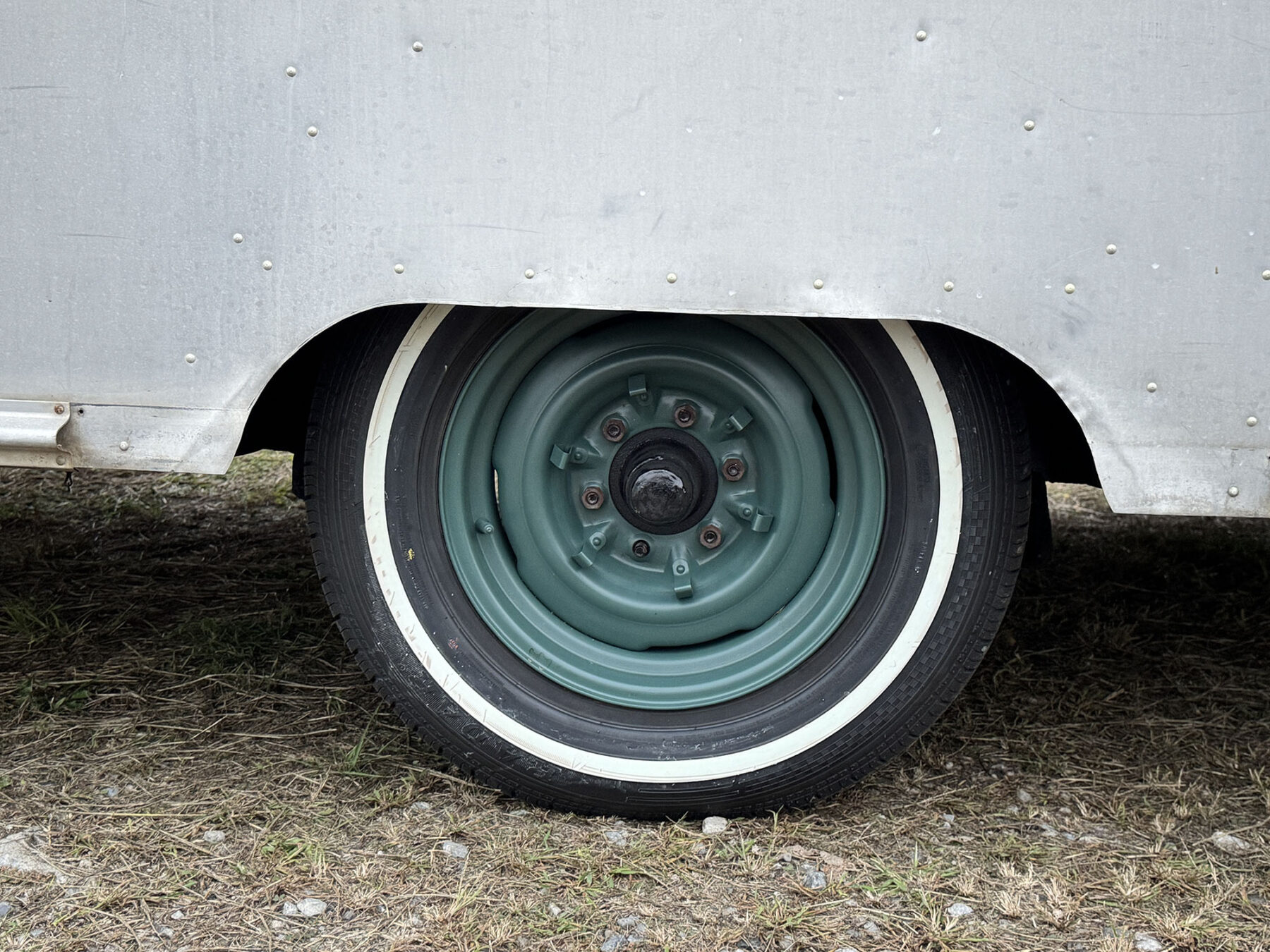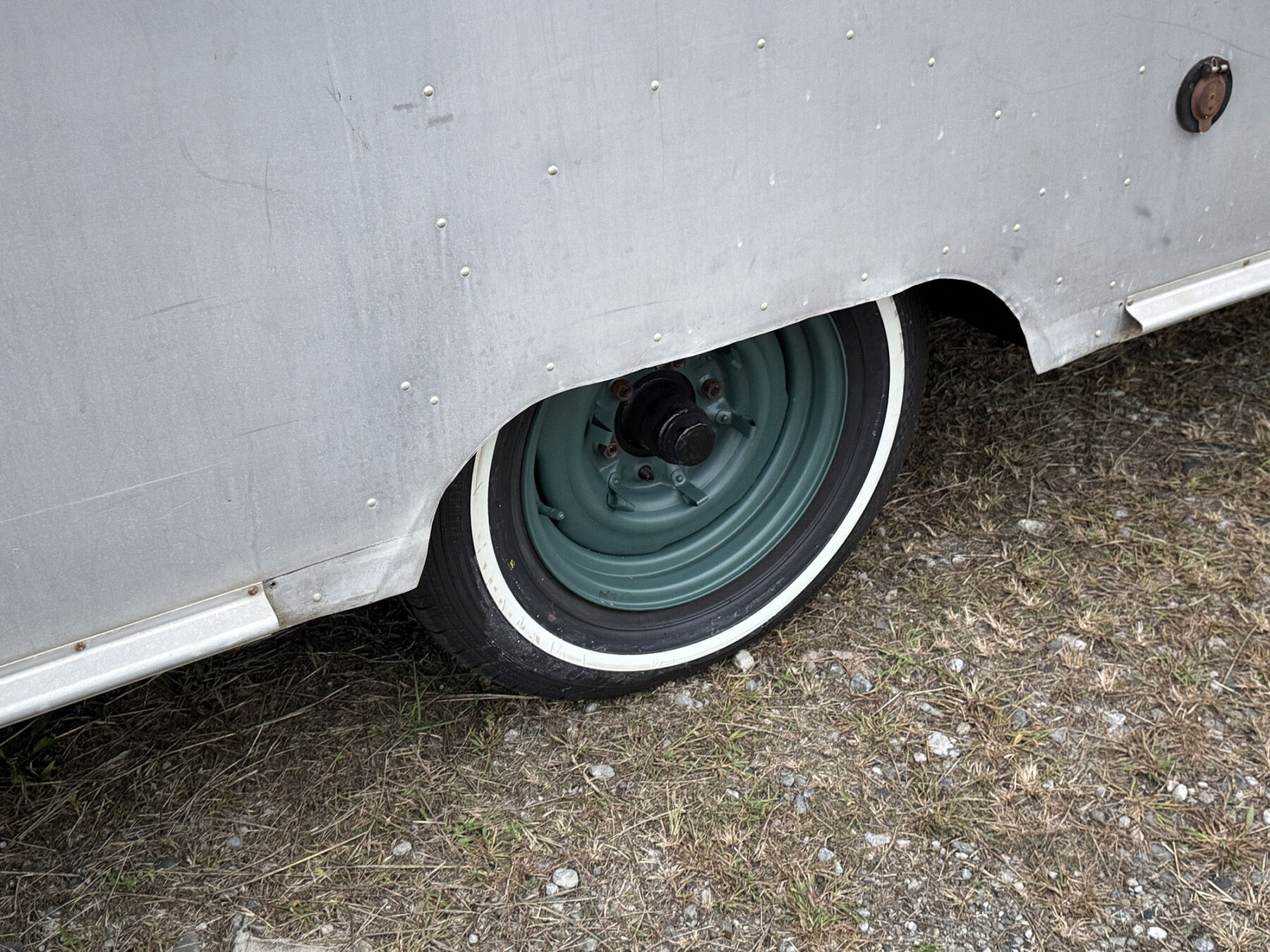 タイヤホイールも鉄ちんホイール+ホワイトリボンタイヤ(もちろんどちらも新品)に交換済みです。日本の車検に適合したライト類や反射板を施工済みです。