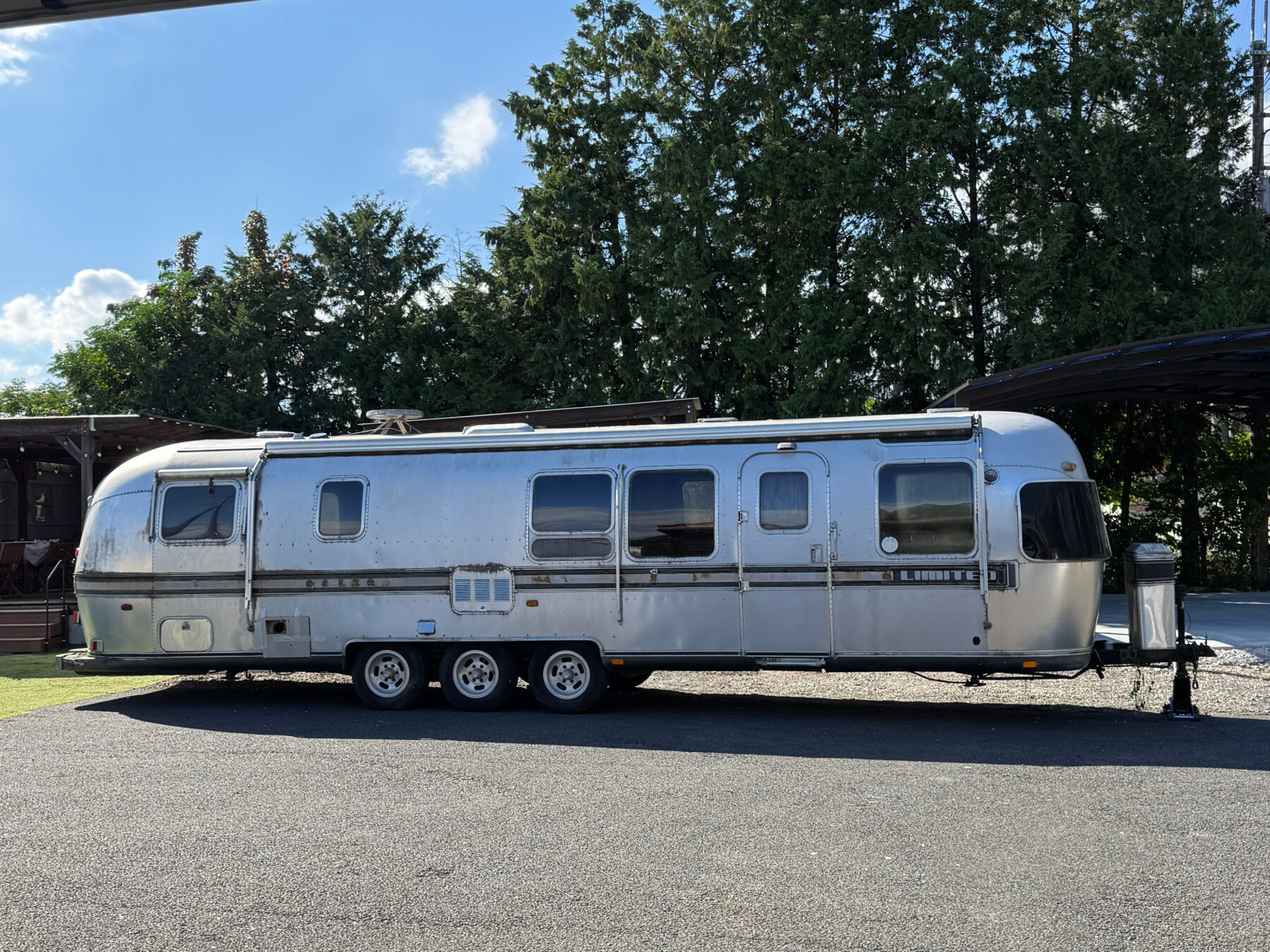 2020年ほどに日本に輸入された一台で、個人で内装などを仕上げていた車両のようです。3軸の34フィートはエアストリームでは最長クラスなので迫力は満点です。