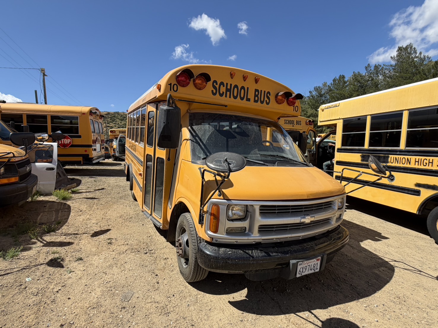 実走行距離が14万マイルと22万キロ程度と少なく状態が良い車両が見つかったので、ショートサイズのスクールバスを仕入れました。