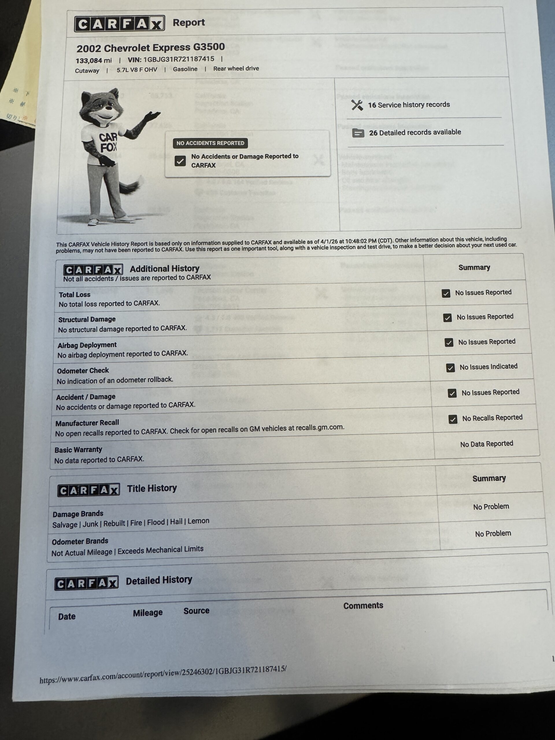しっかりとCARFAXにて現地での履歴を調べ、大きな事故歴がないことはもちろん、車両の整備履歴なども確認済みです。